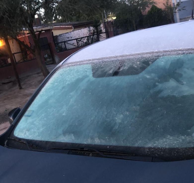 Choya amaneció con una fina capa de hielo sobre vehículos y árboles Choya amaneció con una fina capa de hielo sobre vehículos y árboles