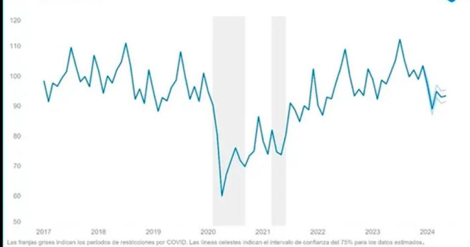 Indicó, además, que "continúa la tendencia bajista en las tasas de crecimiento interanual exhibidas por el IC a partir de enero y marcan en mayo 2024 el mayor valor negativo registrado desde febrero de 2021".