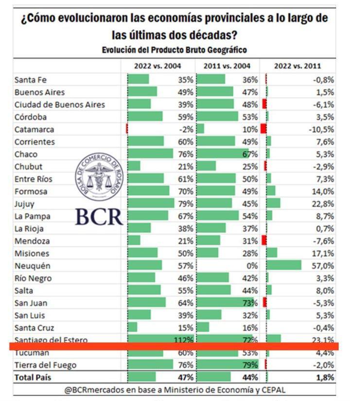 De esta manera, entre 2003 al 2023, Santiago del Estero se encuentra en el top 5 de las provincias que más crecieron en la Argentina.