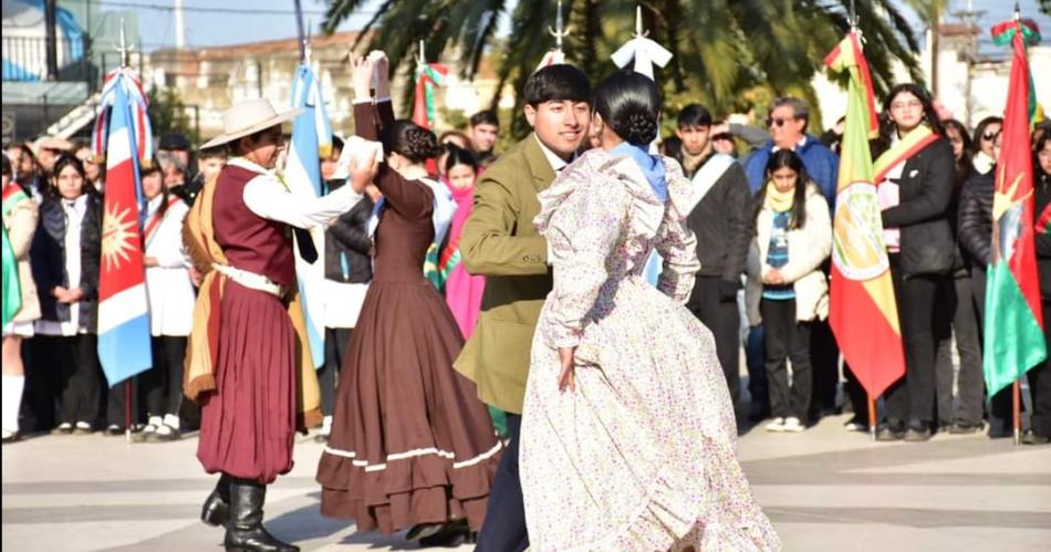 La ceremonia se realizó en una fría mañana con -1° en la plaza 9 de Julio, encabezada por el intendente, Humberto Salim, con la participación de autoridades de los poderes Legislativo y Judicial, instituciones intermedias y delegaciones escolares.