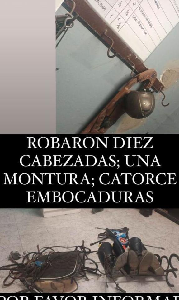 De acuerdo con las fuentes policiales, el hecho habría ocurrido durante la noche del jueves. El presidente del club dijo que descubrió el faltante de "10 cabezadas de cuero, 14 embocaduras y una montura".