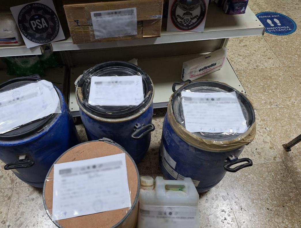 También decomisaron $19.302.765, U$S36.931, 9 armas de fuego largas y cortas, una réplica, 62 municiones, 3 cargadores, 10 balanzas, un horno, un compresor, una prensa, 5 máquinas para producir comprimidos, 11 placas de moldura con un delfín, decenas de bidones y tachos con sustancias químicas, elementos de corte y fraccionamiento.