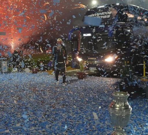 Los futbolistas saludaban, agradecían el cariño de la gente y cantaban a la par del público argentino festejando la sufrida victoria ante Colombia que le dio un nuevo título al país y convirtió a la "Albiceleste" en la máxima ganadora de la competición, superando a Uruguay.
