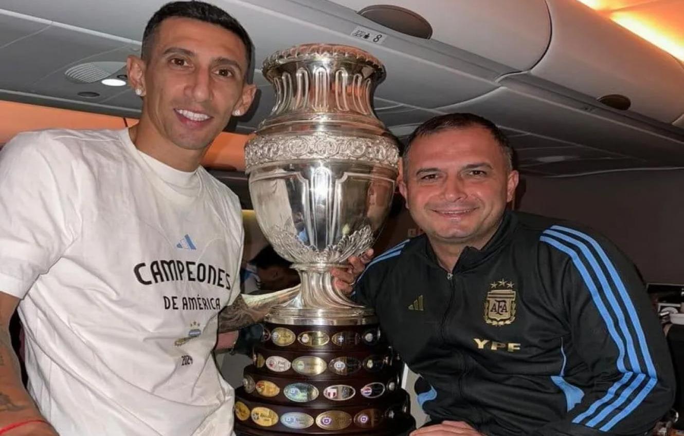 Sin el capitán Lionel Messi que se quedó en Miami para seguir con su proceso de recuperación en el tobillo derecho, el "Fideo" fue el encargado de escoltar a los jugadores y a la Copa de América'2024 en su llegada al suelo nacional.