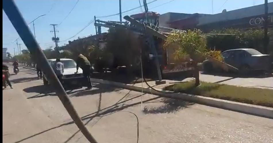 El paso de un camión causó daños en pleno centro de la ciudad de Añatuya, al cortar cables, postes y semáforos.