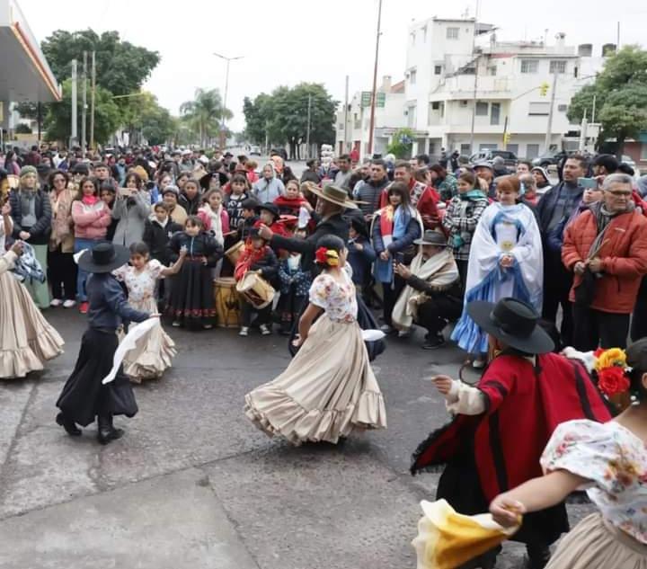 Las delegaciones locales mostraron todo su colorido, ritmo y danza al compás del folclore, para luego sumarse a una de las columnas de la marcha encabezada por el "Indio" Froilán González, quien junto al intendente Jorge Mukdise y otras autoridades recorrieron las calles de la ciudad, con bombos y ropas típicas haciendo paradas para zapatear y bailar.