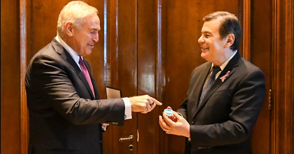 A su llegada a la sede gubernamental, el diplomático fue recibido por el jefe de Gabinete, Elías Suárez, y participó luego de una reunión en el Salón de Acuerdos "Juan Felipe Ibarra", en la que también estuvieron los ministros de las diferentes carteras provinciales.