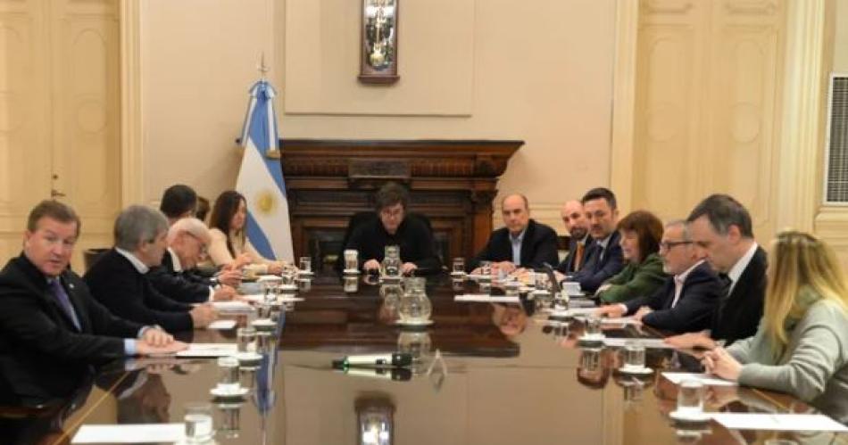 Completan la lista de asistentes el titular del Banco Central de la República Argentina, Santiago Bausili; el asesor presidencial, Santiago Caputo; y el vocero presidencial, Manuel Adorni.