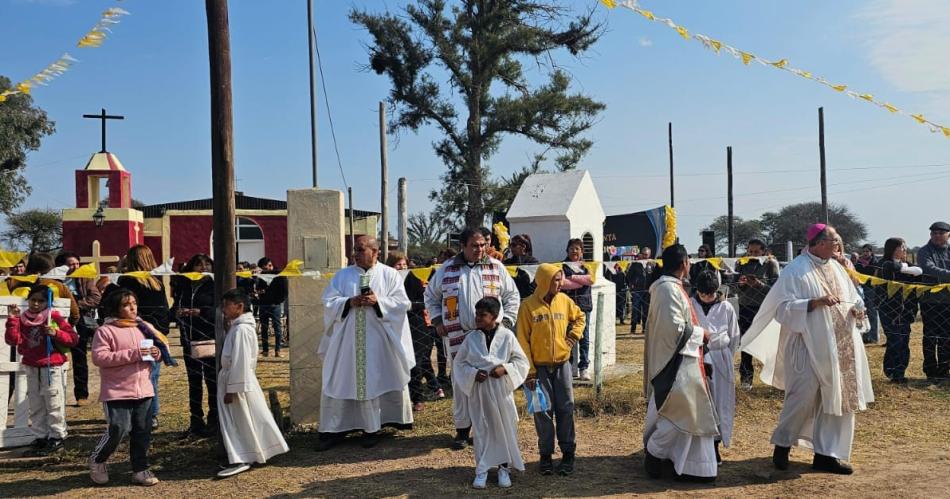 La jornada, que contó también con la presencia del comisionado local Gustavo Hefner, el padre José Vera, el padre Ariel Miranda y del vicario Sergio Castillo, dio comienzo con la procesión y la posterior celebración de la santa misa a cargo del obispo de la Diócesis de Añatuya, monseñor José Luis Corral, quien bendijo a todos los vecinos presentes, entre ellos agrupaciones gauchas, grupo de ciclistas y de vehículos particulares.