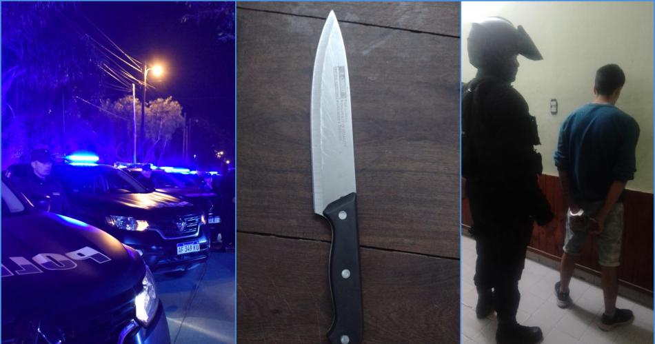 Un hombre fue detenido después de haber protagonizado un escándalo, en el que agredió a su hermano tras una discusión y no conforme con ello, horas más tarde lo amenazaba de muerte con un cuchillo. Los policías tuvieron que intervenir para que desistiera de su accionar y se entregara.