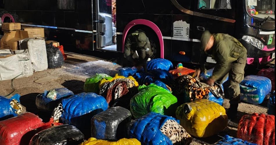 Los gendarmes realizaron controles preventivos y detectaron el colectivo con mercadería ilegal y la sustancia, así como también dos automóviles que transportaban los bultos.