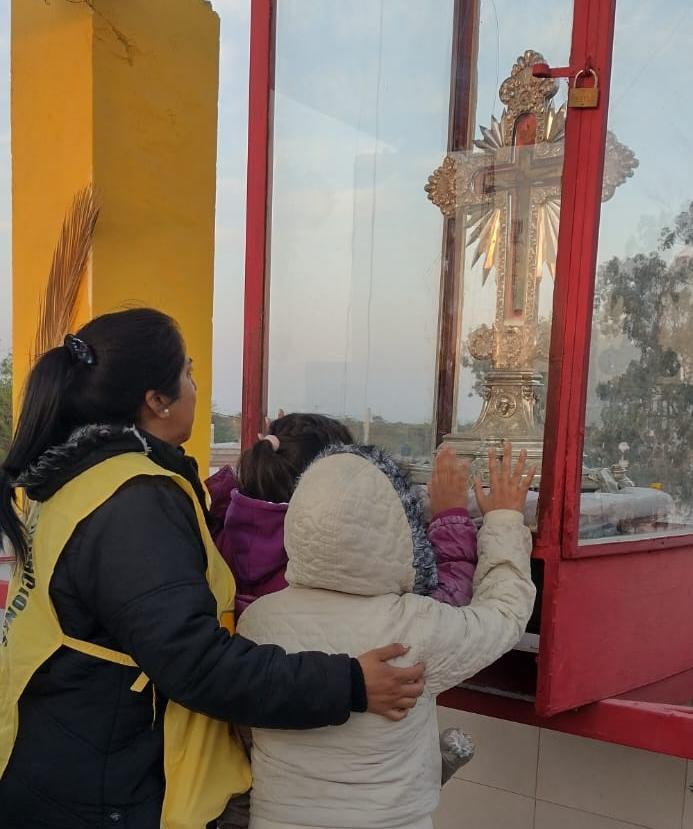 "Somos la Coordinadora de Peregrinaciones Marianas, pero nos conocen como el grupo de los "chalecos amarillos". Nuestro principal compromiso es ser la custodia de la Cruz desde el momento que sale de la iglesia hasta que regresa, después de la procesión. Sin embargo, la tarea va mucho más allá, ya que somos los que armamos y guiamos al peregrino", explicó Rita Urrejola, una de las integrantes del grupo.