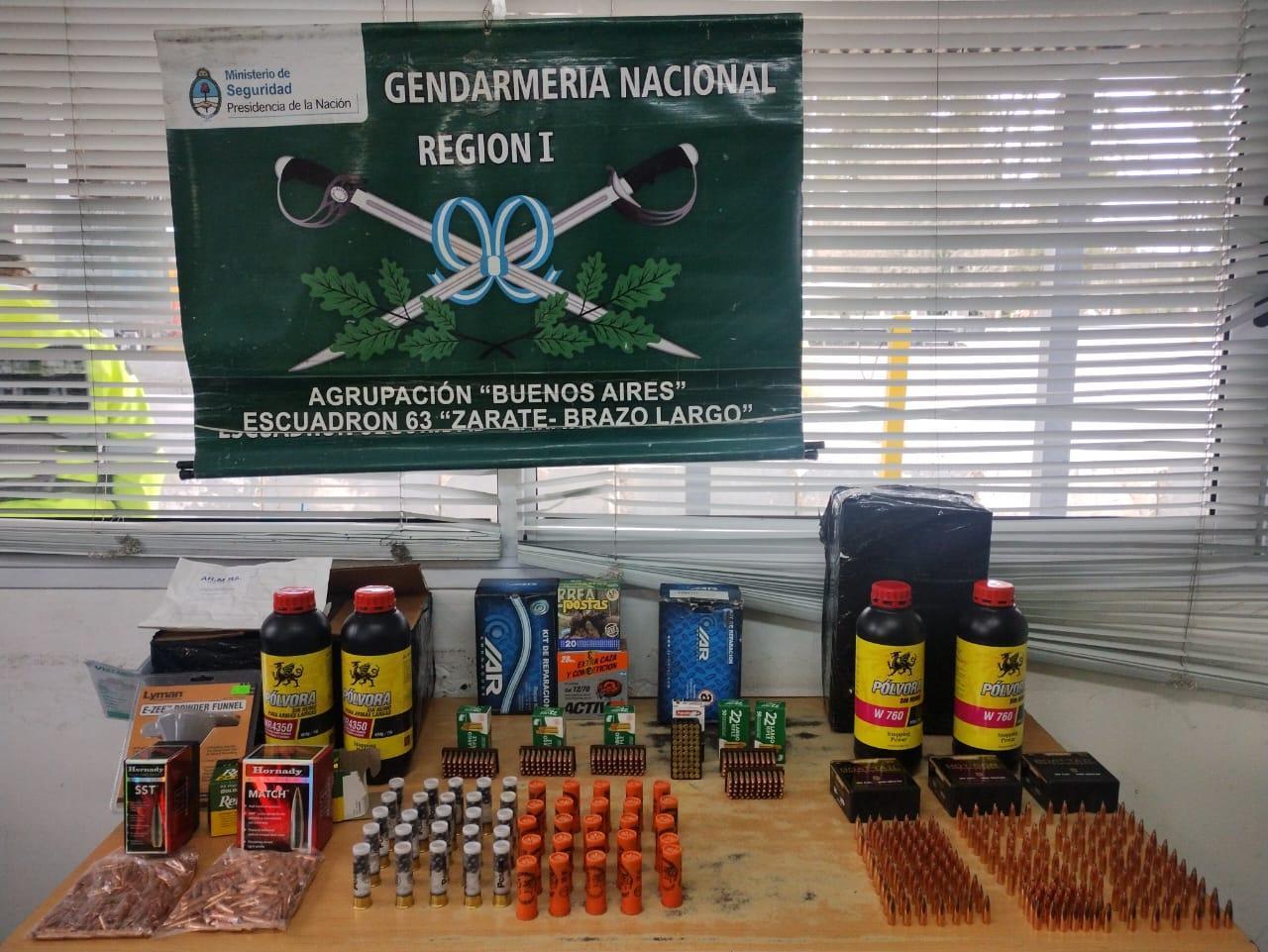 Durante la inspección, realizada en presencia de testigos, los gendarmes utilizaron un escáner manual y encontraron 700 puntas de municiones, 50 cartuchos de diferentes calibres, 300 municiones calibre .22 y cuatro envases con pólvora.