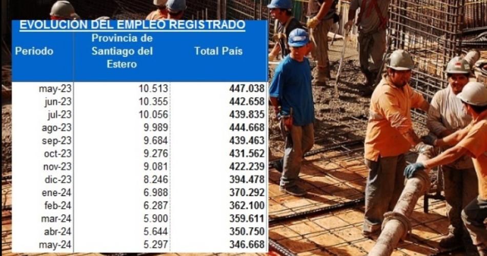 En Santiago del Estero, entre mayo de este año y el mismo mes de 2023 aun el Ieric no publicó el dato por provincia de junio, sino solo el número nacional-, se perdieron más de 5.000 empleos en el sector. Ese dato equivale a que prácticamente 1 de cada 2 quedaron sin empleo en los últimos 12 meses. O bien que la caída en forma interanual alcanza al 50% del empleo formal en el sector, contra una caída interanual a nivel nacional del 21%.