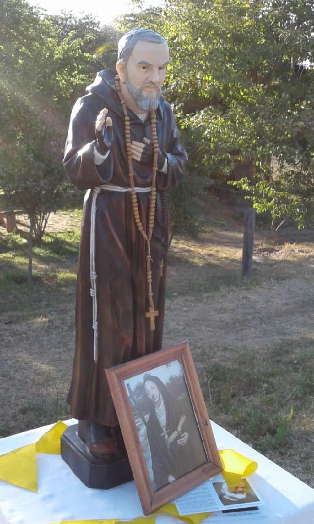 En Maco, la familia Suárez sacó la imagen del Padre Pío para que los fieles puedan tomar gracia. Entre tantos, estuvo presente la senadora Claudia Ledesma Abdala de Zamora.