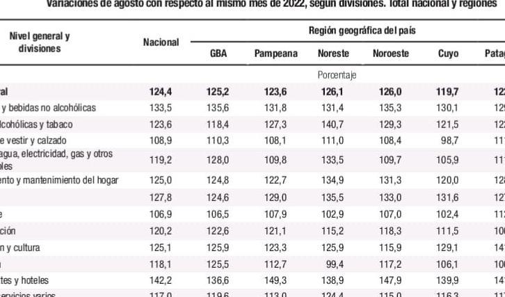 En forma interanual, de agosto 22 a agosto 23, la suba fue de un 120% en el país y en el Noa de 123%. Solo la supero la región Nea con 123,1%. Estos datos no hacen otra cosa que reflejar lo que ya la gente viene sintiendo hace rato: con la plata cada vez se compran menos productos. Es la inflación la que se devora todo.