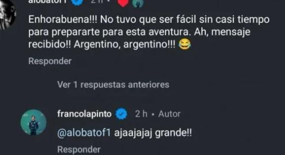 Por su parte, Lobato pidió disculpas en un análisis realizado en SoyMotor y tuvo una divertida interacción con el piloto en una de sus publicaciones luego de la carrera.