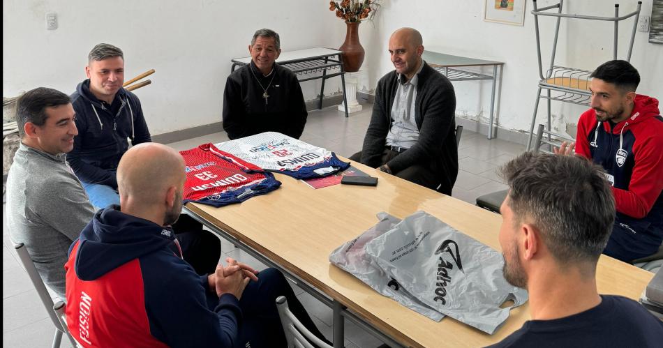 Hoy, en horas de la mañana, los jugadores de Quimsa, Nicolás Romano y Juan Ignacio Brussino y el entrenador Leandro Ramella, acompañados por dirigentes, visitaron al padre Mario Tenti a quien le hicieron entrega de la camiseta que Quimsa usará en la Intercontinental Cup en Singapur con la imagen de Mama Antula.