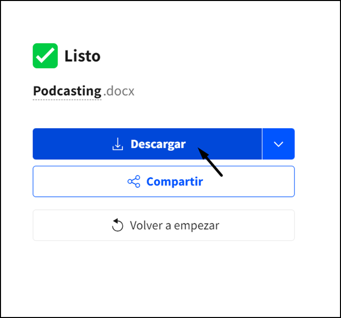 Finalmente, podrás descargar el archivo Word que se creó a partir de tu PDF. Solo tienes que hacer clic en "Descargar" para guardarlo en tu dispositivo.