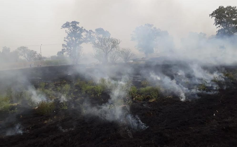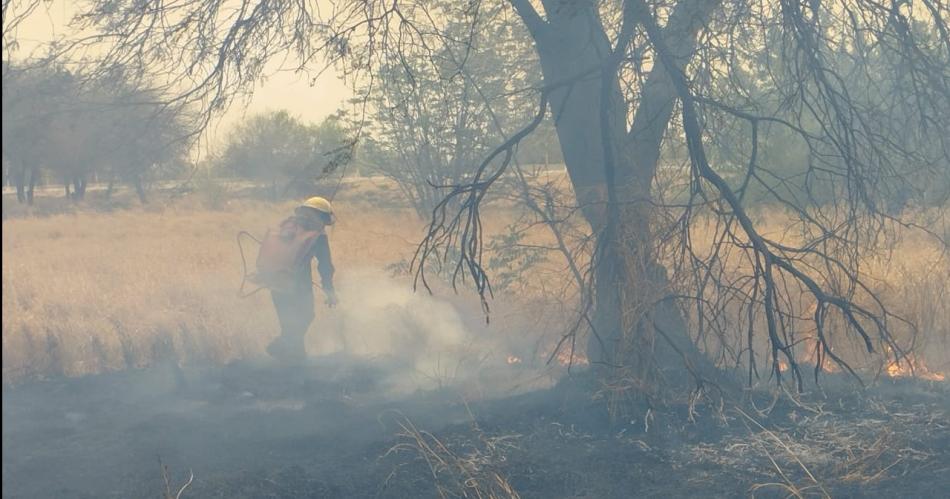 Los Bomberos Voluntarios de Santiago del Estero, trabajaron durante varias horas para apagar un incendio de pastizales cuyo humo obstaculizaba la vista en la Costanera Núñez del Prado.