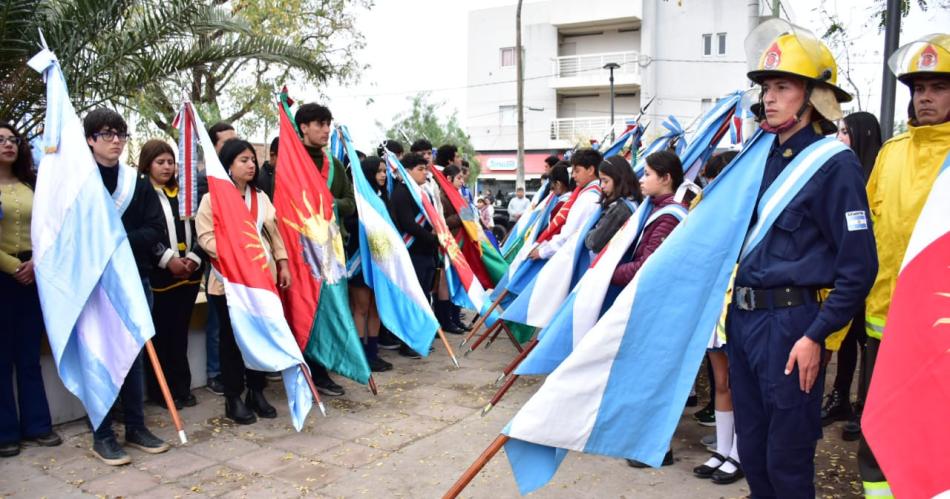 Se colocaron las ofrendas florales al pie del busto de Domingo Sarmiento y se ejecutó un minuto de silencio en memoria del prócer y de todos los docentes fallecidos.