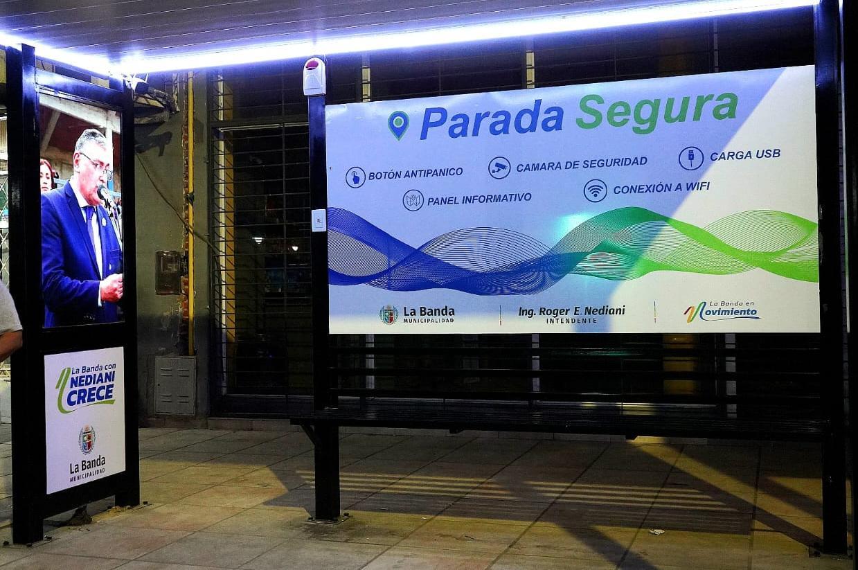 En la ocasión, el intendente Ing. Roger Elias Nediani, destacó: "Hoy estamos habilitando dos Paradas Seguras, una ubicada en la calle España y Avenida San Martín y la otra sobre la Avenida Besares casi Belgrado. Paradas que disponen de Wifi, cargador USB, cámara y un botón antipánico que tiene una conexión con la base de Alerta Banda".