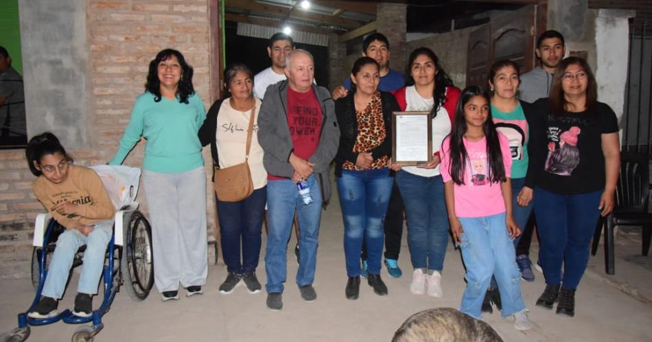 Como detalle de color, los niños del barrio le hicieron entrega de un presente al intendente Castro y a la diputada Marcela Soria en agradecimiento por las mejoras en la plazoleta.