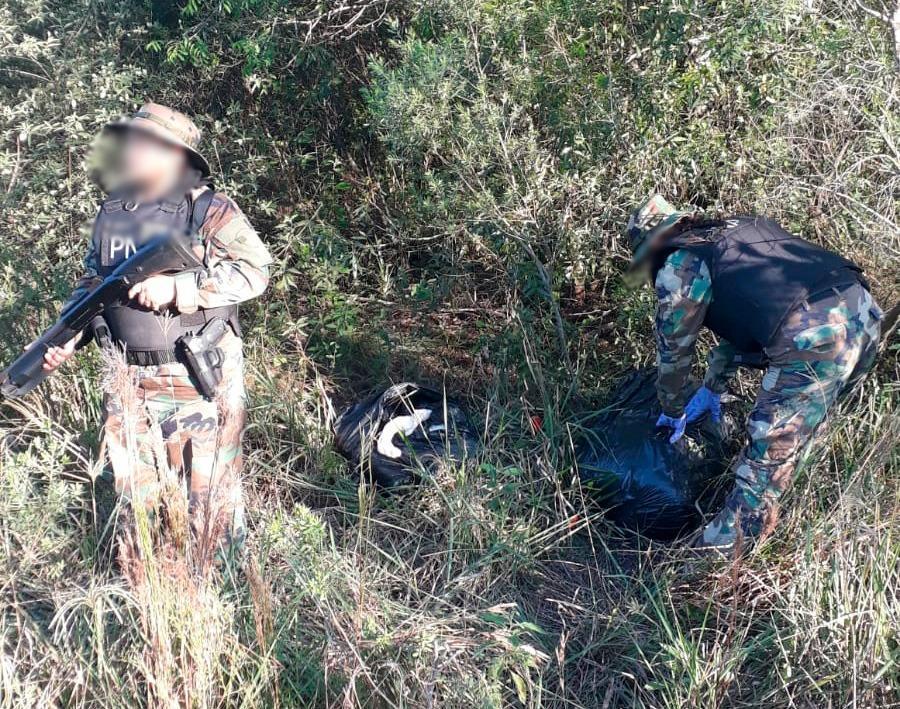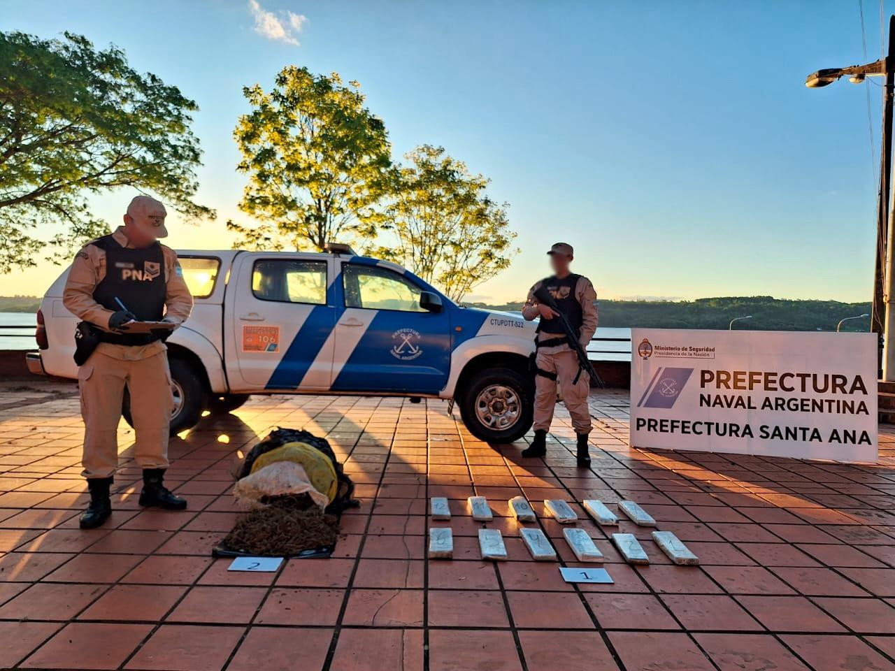 Al aproximarse, el personal de la Fuerza encontró dos bultos negros abandonados y, tras realizar rastrillajes, hallaron otros ocho paquetes en el kilómetro 1.614 del río Paraná. La inspección reveló que contenían marihuana en granel y 12 panes, con un peso total superior a los 140 kilogramos y un valor que supera los 181 millones de pesos.