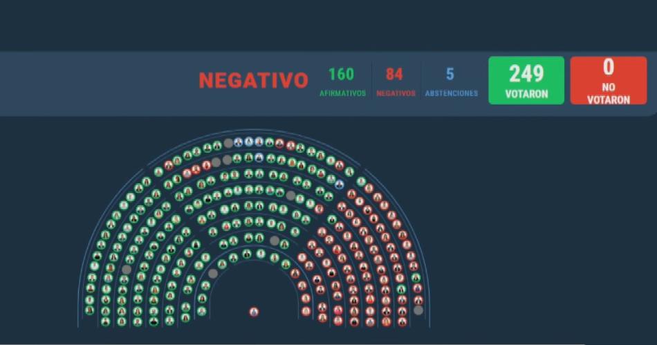La votación por la insistencia de la norma, que debía reunir dos tercios de los presentes, resultó con 160 votos positivos, 84 negativos y 5 abstenciones.