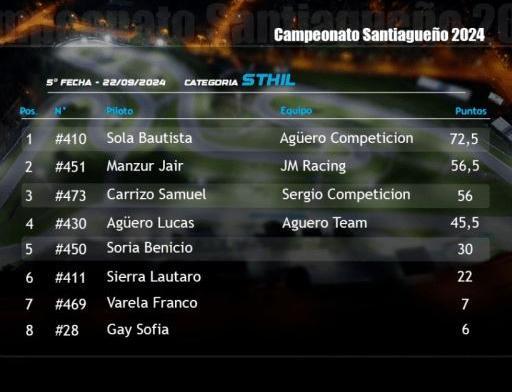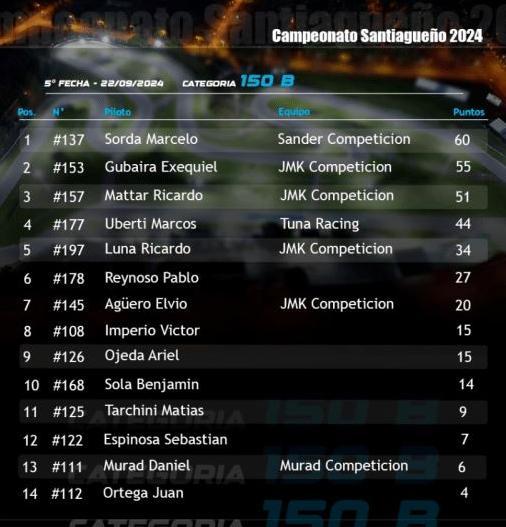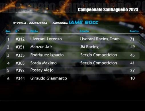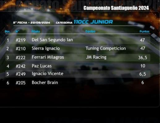 A falta de una fecha, así están las posiciones en el Campeonato Santiagueño de Karting A falta de una fecha, así están las posiciones en el Campeonato Santiagueño de Karting