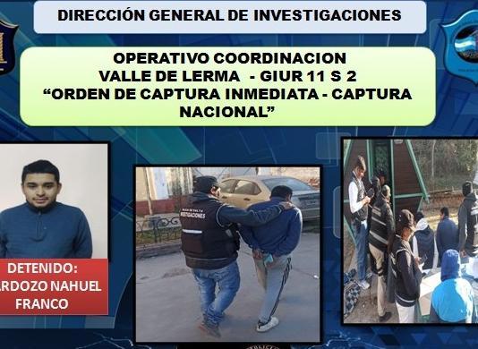 Las redadas fueron perpetradas en las cabañas del Camping Municipal de Campo Quijano por personal de la Dirección General de Investigaciones. Anoche fue confirmada la detención de Franco Nahuel Cardozo, 24, domiciliado en pasaje Lima 2379, barrio Ejército Argentino, provincia de Tucumán.