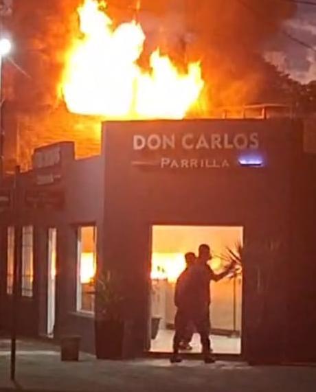 Minutos después de las 19, el comercio llamado "Don Carlos" se prendió fuego en la parte trasera generando extensas cortinas de llamas que amenazaban con consumir por completo el lugar y extenderse.