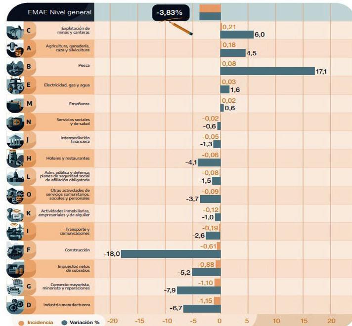 La actividad económica cayó 3,8% y solo un tercio del total registró números positivos La actividad económica cayó 3,8% y solo un tercio del total registró números positivos