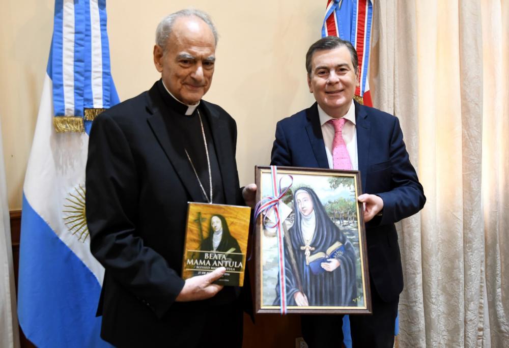 El gobernador Gerardo Zamora, junto con el jefe de Gabinete de Ministros, Elías Suárez, recibió este jueves en Casa de Gobierno a monseñor Marcelo Sánchez Sorondo, obispo titular de la Diócesis de Vescovio, Italia, quien llegó a la provincia para dictar este jueves por la tarde una conferencia sobre "Mama Antula: partícipe y difusora de la gracia de Cristo", que se desarrollará en el salón auditorio de la Universidad Católica de Santiago del Estero.