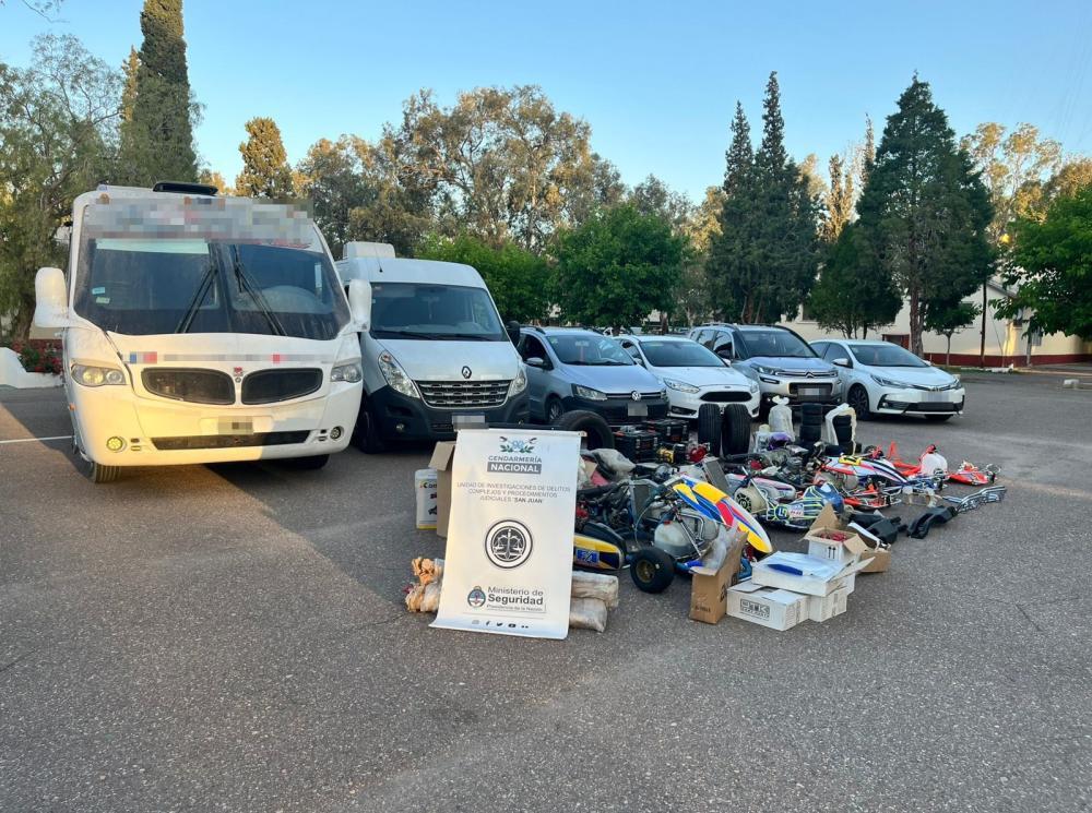 En un operativo realizado en la provincia de San Juan, las autoridades detuvieron a un hombre acusado de lavar dinero para una organización de narcotráfico. Tras coordinar la investigación junto al Ministerio de Seguridad y la Gendarmería Nacional, se efectuaron seis allanamientos en propiedades relacionadas con la banda criminal, donde se incautaron vehículos, kartings de alta gama y equipos de competición, además de divisas en efectivo.