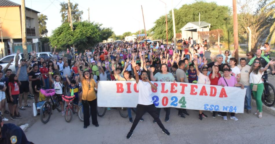 Organizado por la escuela Bartolome Mitre N °84, la tradicional bicicleteada aniversario con la presencia de más de 200 niños en sus rodados comenzaron a transitar por las calles del pueblo, mientras desde las veredas, los vecinos aplaudian el paso de los pequeños.