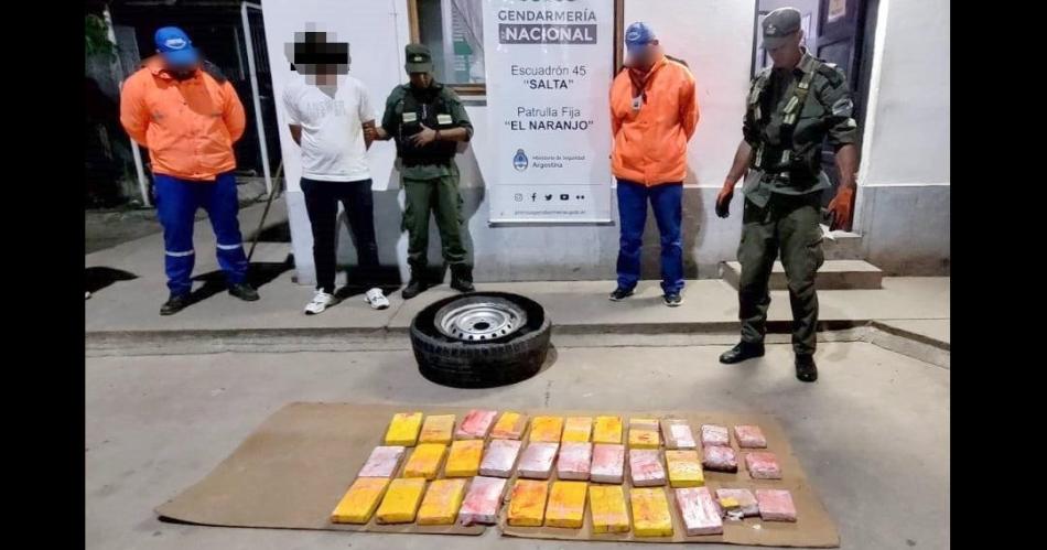 En el marco de las tareas que lleva a cabo el Ministerio de Seguridad en la lucha contra el narcotráfico, la Gendarmería Nacional Argentina incautó más de 31 kilos de cocaína dentro de la rueda de auxilio de un rodado y detuvo a cuatro integrantes de una banda narcocriminal en la provincia de Salta.