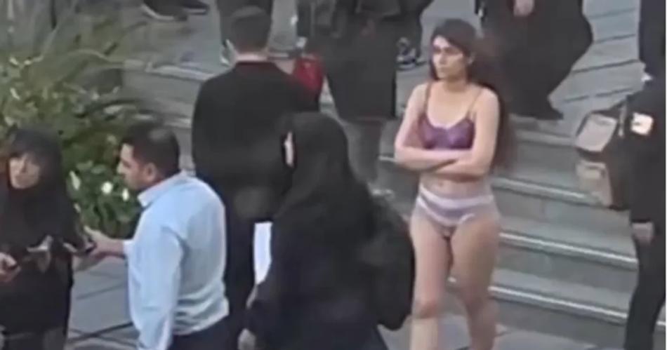 A la estudiante le arrancaron el pañuelo y la ropa, según medios de comunicación y canales de redes sociales fuera de Irán. En forma de protesta, la mujer se quitó la ropa y se sentó fuera de la universidad antes de caminar desafiante por la calle ante el asombro de las personas que pasaban por el lugar, según videos de redes sociales.