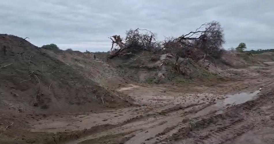 Un video grabado por periodistas de EL LIBERAL muestra la zona afectada, donde grandes camiones generan el desplazamiento del cauce y dañan los caminos locales.