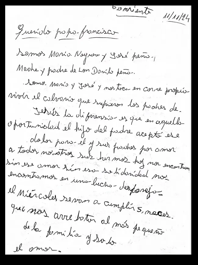 María Noguera y José Peña le enviaron un escrito de puño y letra al Sumo Pontífice.