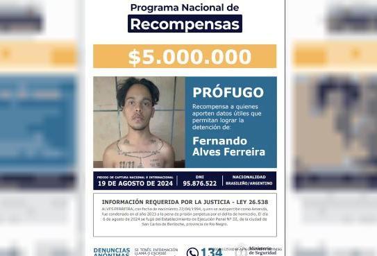 "Ofrécese como recompensa, dentro del territorio de la República Argentina, la suma de $5.000.000, destinada a aquellas personas que, sin haber intervenido en los hechos delictuales, brinden datos útiles que permitan lograr la captura de Fernando Alves Ferreira, quien se autopercibe como Amanda, sobre quien pesa orden de captura nacional e internacional, desde el 19 de agosto de 2024", detalla el escrito.