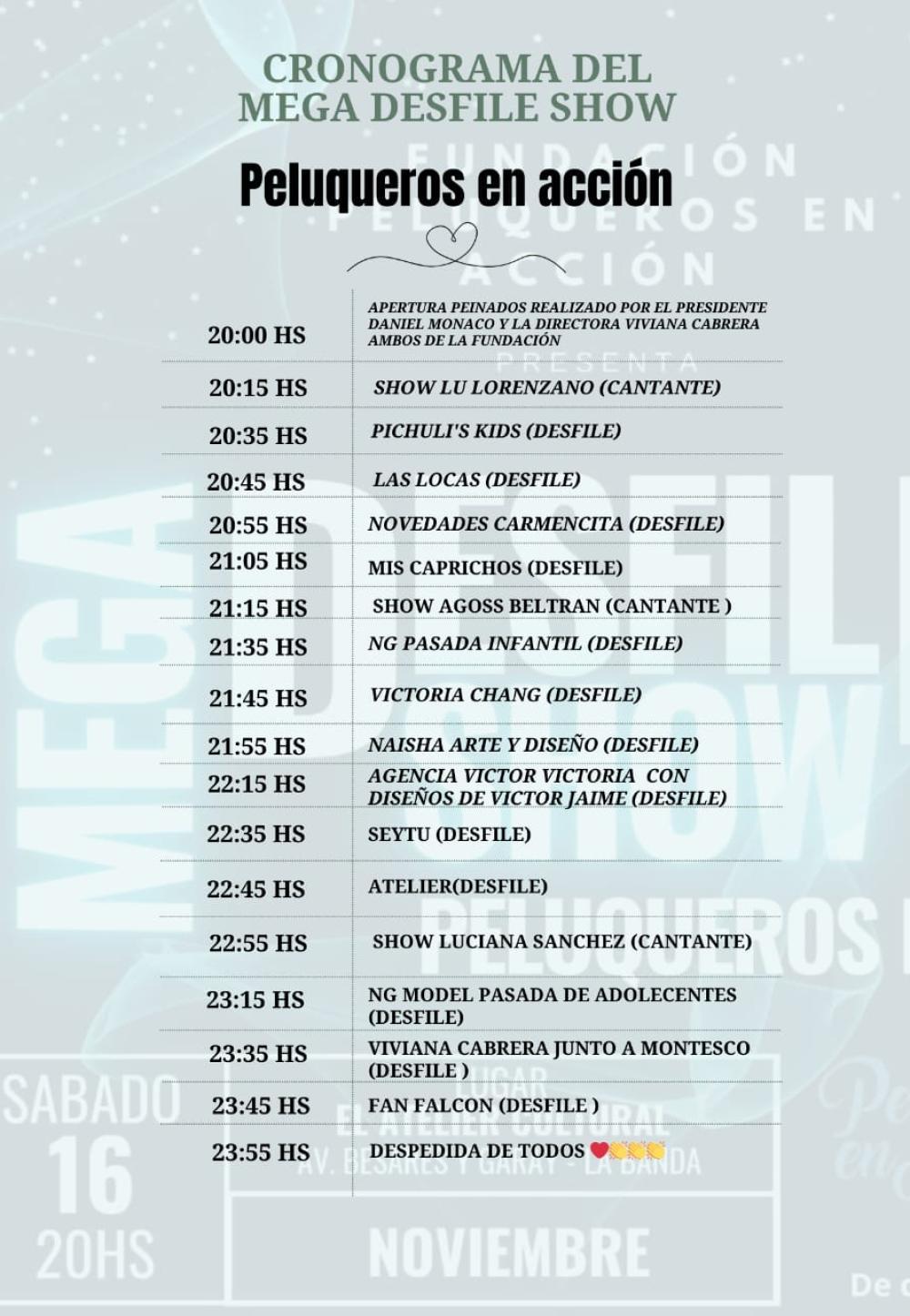 Este sábado 16 de noviembre, se realizará el Mega Desfile Show organizado por la Fundación Peluqueros en Acción en el Atelier Cultural de la ciudad de La Banda.