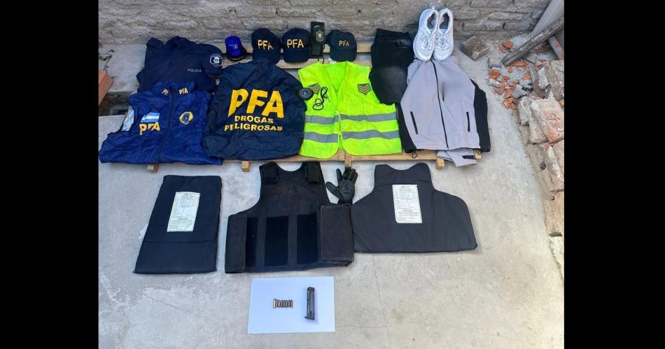 Por último, se secuestraron teléfonos celulares, indumentaria y vestimenta policial, una baliza policial, esposas, indumentaria de diferentes fuerzas y elementos institucionales entre ellos un chaleco balístico el cual poseía un pedido de secuestro vigente desde julio de 2010.