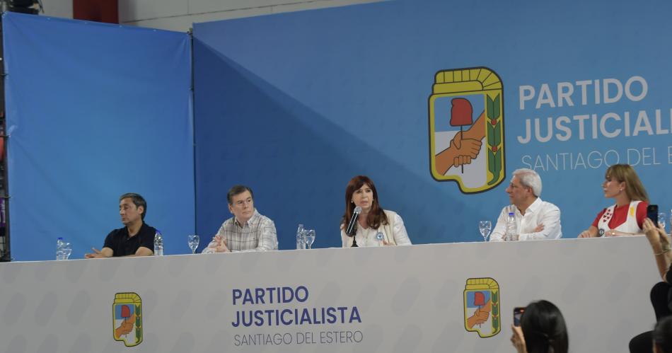Antes del acto en Quimsa, Cristina Kirchner visitó la sede histórica del Partido Justicialista ubicada en Av. Belgrano.La exvicepresidenta estuvo acompañada del titular del PJ local, senador José Emilio Neder. Allí mantuvo un encuentro con intendentes y comisionados municipales peronistas.