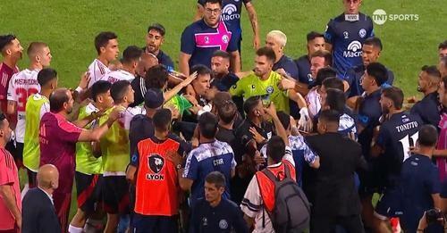 Y para cerrar una noche demasiada oscura para River en el Malvinas Argentinas, al final del encuentro se desató un escándalo entre algunos jugadores de ambos planteles que se recriminaron mutuamente (con intentos de agresiones inclusive) y que dejaron una imagen lamentable.