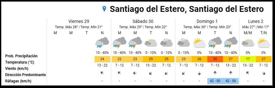 Según el último informe del Servicio Meteorológico Nacional (SMN), las lluvias en la ciudad Capital de Santiago del Estero persistirán, generando un ambiente inestable en la región.