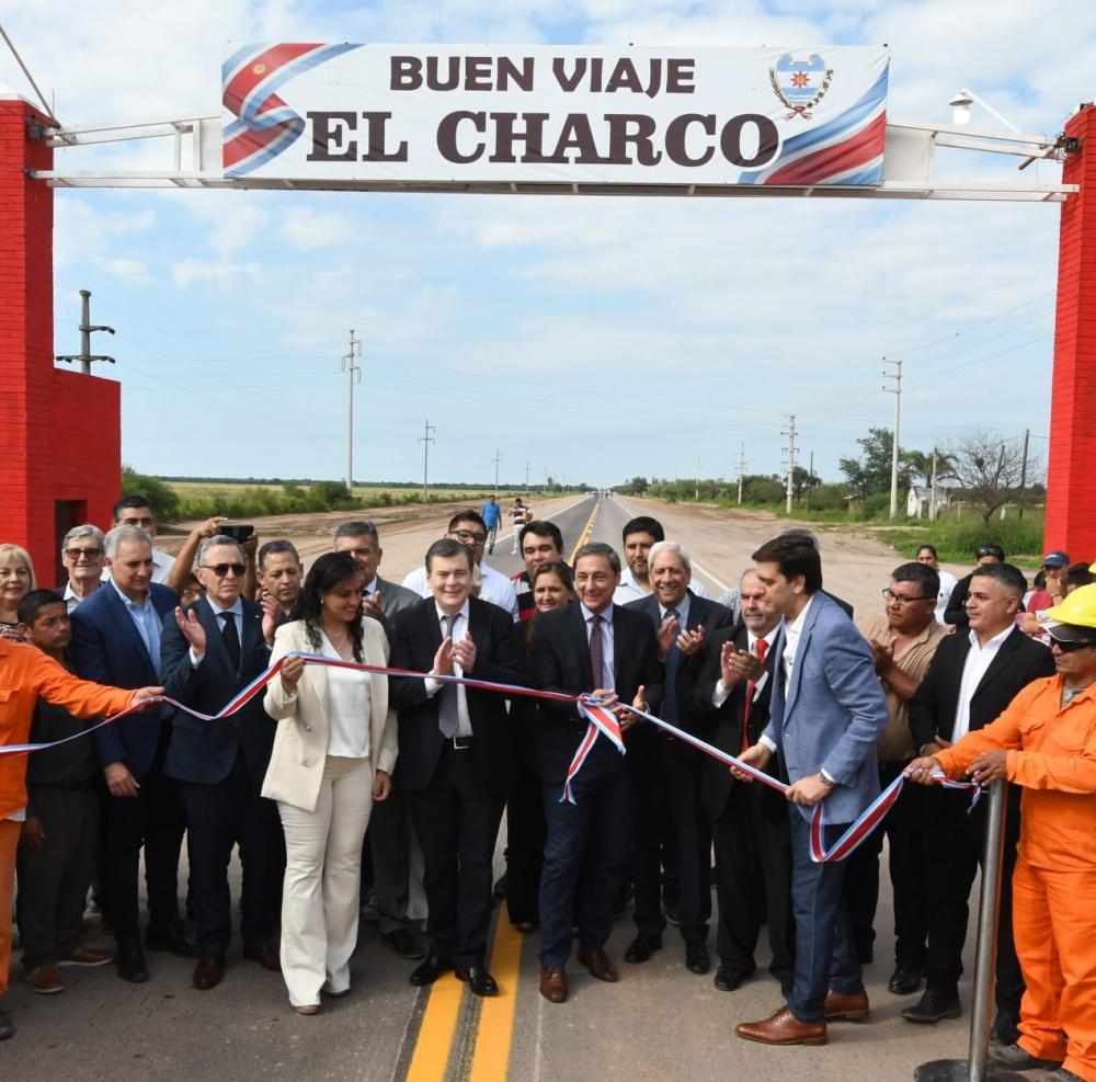 Estuvo acompañado por el vicegobernador Carlos Silva Neder y los ministros de Obras Públicas, Aldo Hid, y de Gobierno, Marcelo Barbur; el senador José Emilio Neder, y otras autoridades que participaron del corte de cintas que se realizó en el arco de entrada de El Charco, junto con la comisionada local, Carol Nereha Ávalos Torres; el intendente termense, Jorge Mukdise, y funcionarios de comunas de la zona que son impactadas por esta importante obra.