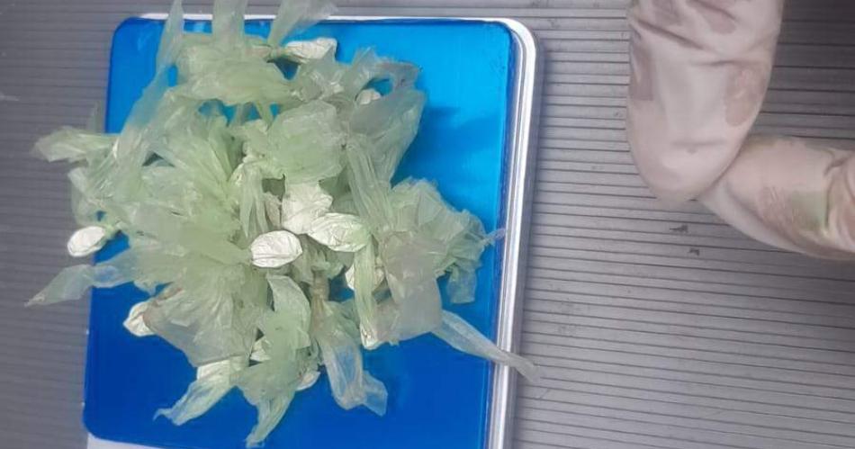 Al ingresar al predio, los policías encontraron a cuatro personas sentadas en un banco. En ese momento, uno de los involucrados arrojó una bolsa de nailon verde detrás del banco, la cual contenía varios envoltorios con sustancias blanquecinas.