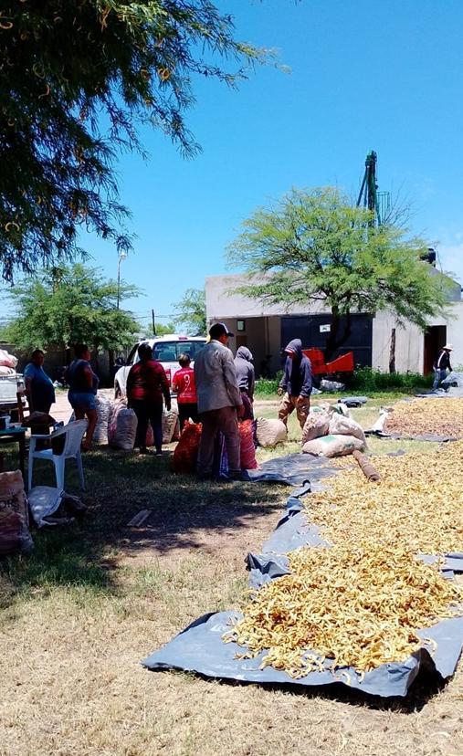 La recolección de algarroba no es un proceso sencillo. Para obtener las vainas, es necesario limpiar previamente el terreno debajo de los árboles, una tarea que involucra a más de 100 familias relacionadas con la cooperativa. La mayor parte de la cosecha proviene de montes nativos, aunque también se recolecta de plantaciones realizadas entre 2003 y 2006, como parte de un programa de reforestación que cubrió 800 hectáreas en la zona.