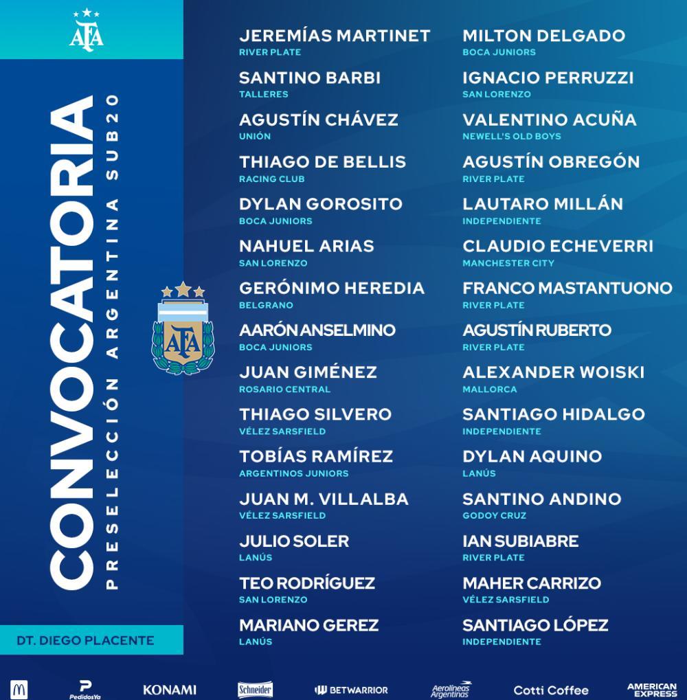 Agustín Chávez (Unión), Dylan Gorosito (Boca Juniors), Nahuel Arias (San Lorenzo), Tobias Ramírez (Argentinos Juniors), Claudio Echeverri (Manchester City), Alexander Woiski (Mallorca), Ignacio Perruzzi (San Lorenzo).